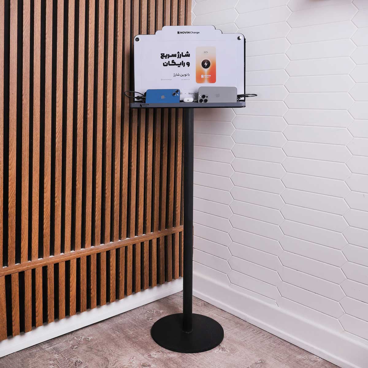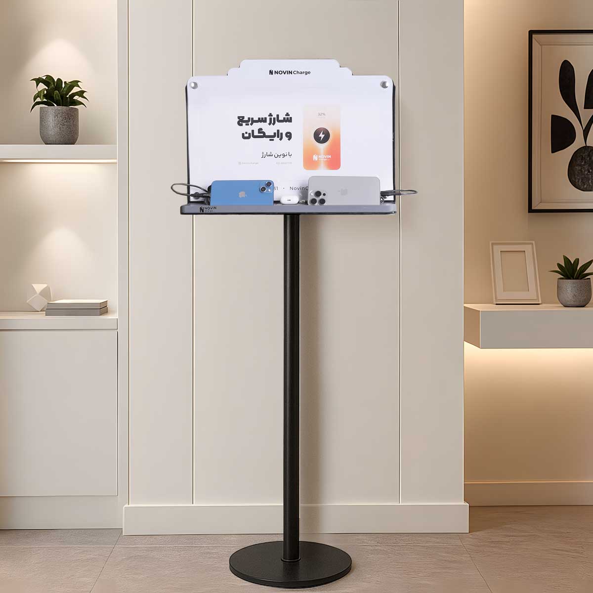 هر روزه تعداد زیادی از افراد از پرسنل شما شارژر درخواست میکنند که باعث هدر دادن زمان آنها میشوند. استند شارژ موبایل ایستاده سوپر فست شارژ نوین شارژ میتواند با یک تیر ۲ نشان برای شما بزند!