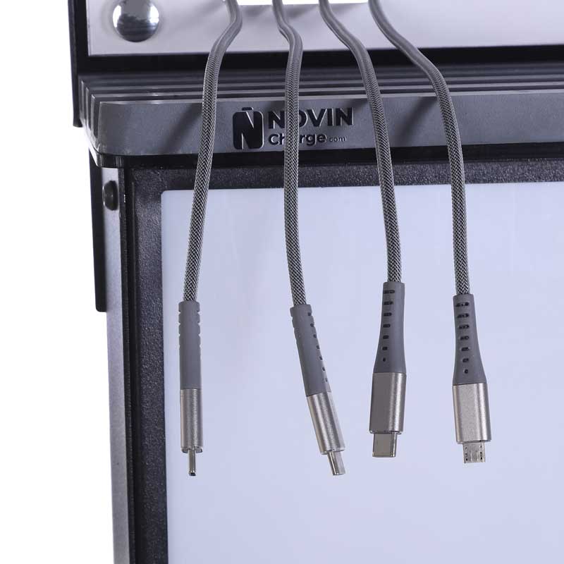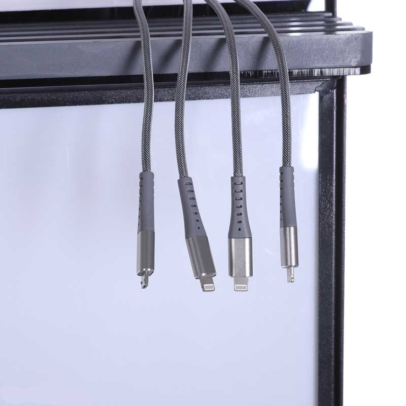 1. کابل شارژ : استندهای شارژ در طول روز زیاد استفاده می‌شوند، لذا انتخاب جنس کابل شارژ مناسب از اهمیت ویژه‌ای برخوردار است. در صورتی که استند شارژ موبایل تبلیغاتی کابل‌های شارژ مناسبی نداشته باشد، این کابل‌ها خیلی زود قطع می‌شوند و کارکرد استند شارژ موبایل با مشکل مواجه می‌شود. کابل شارژ مناسب استند شارژ موبایل تبلیغاتی ، برزنتی مخصوص است.